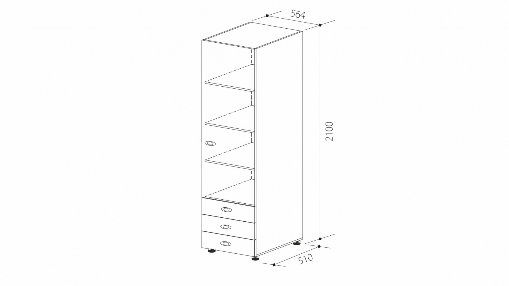 ДхВхШ: 564х2100х510 мм.