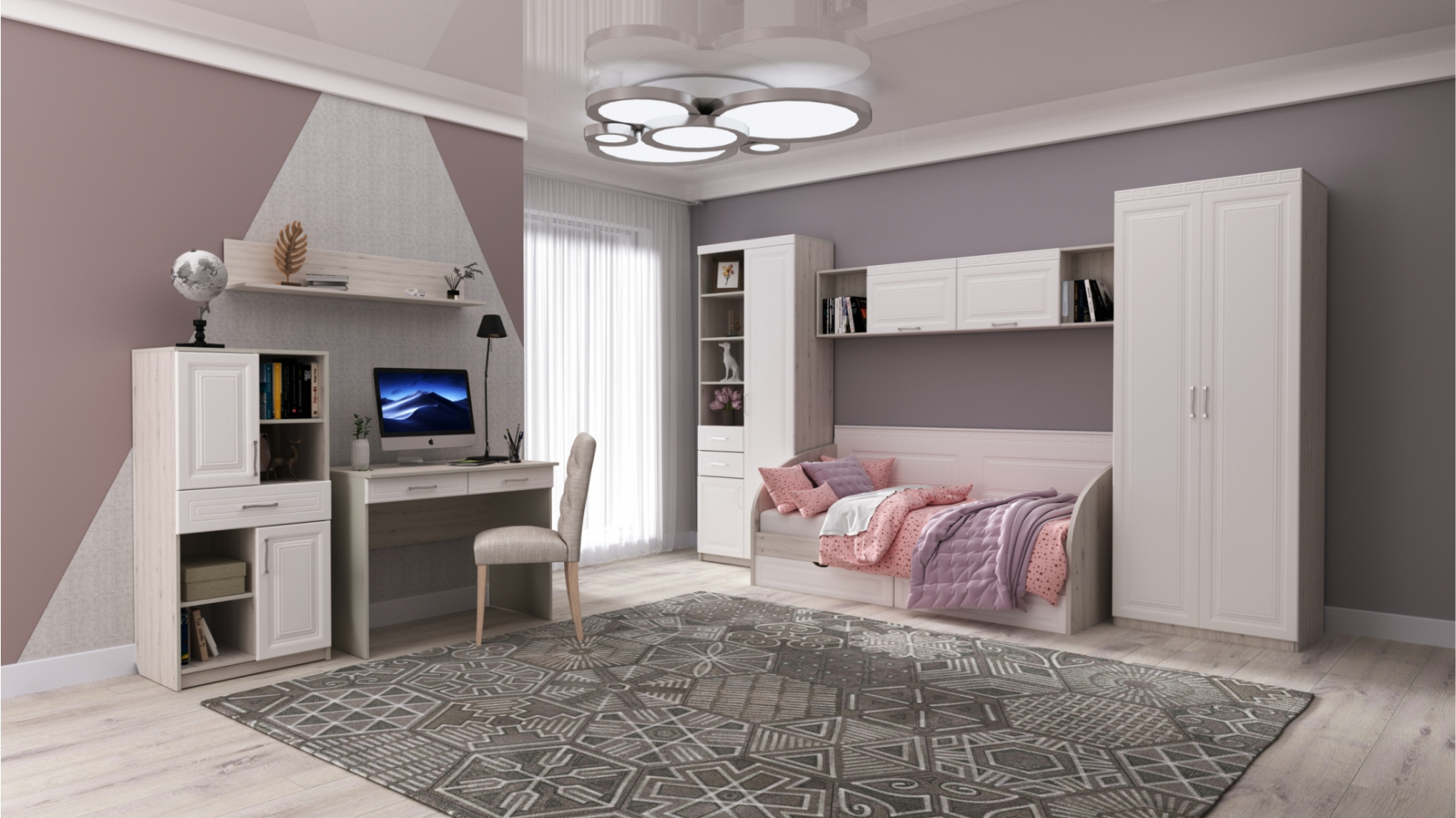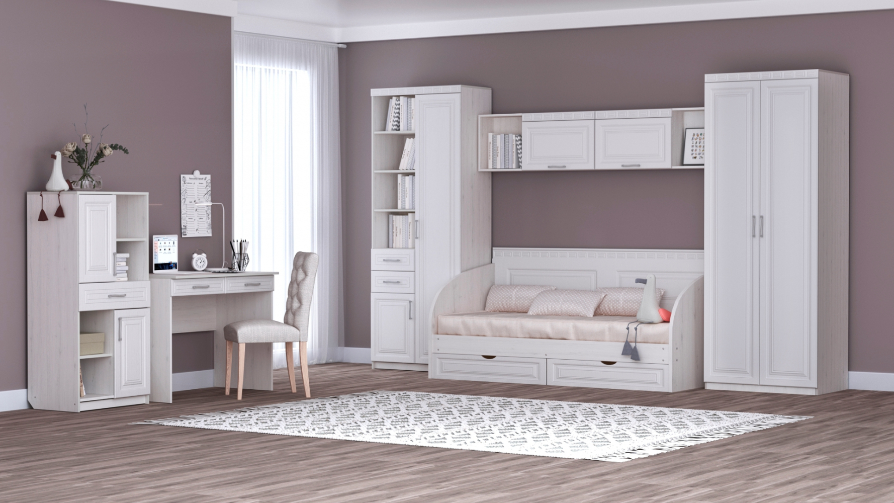 *Фрезеровка на фасадах этого набора воспринимается очень лёгкой и изящной, благодаря мягким линиям и спокойному классическому рисунку.