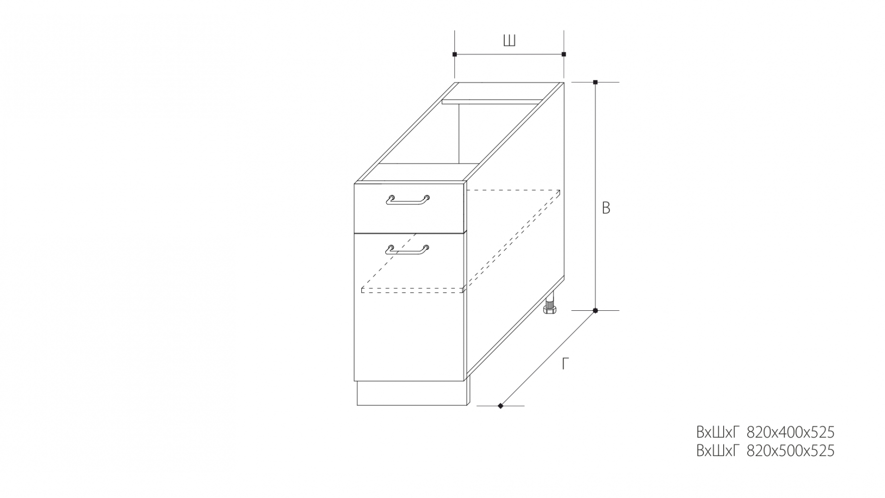 ВхШхГ: 820х500х525 мм.