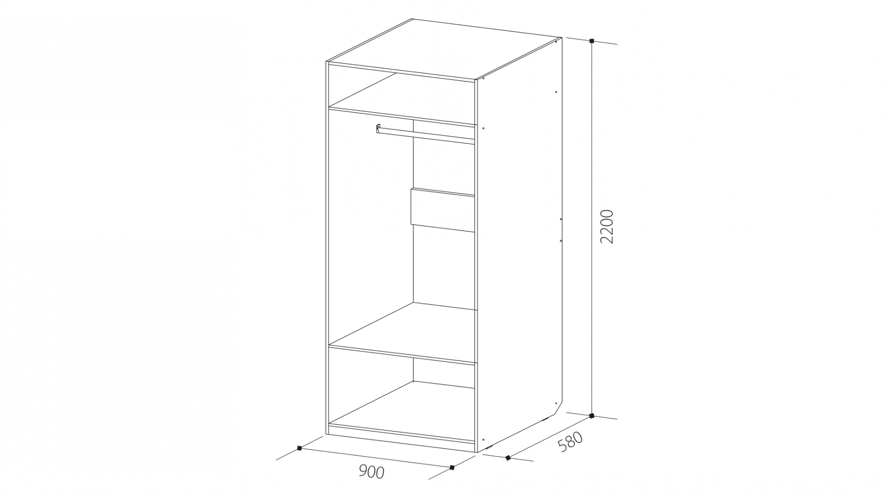 ДхВхШ: 2200х900х580 мм.